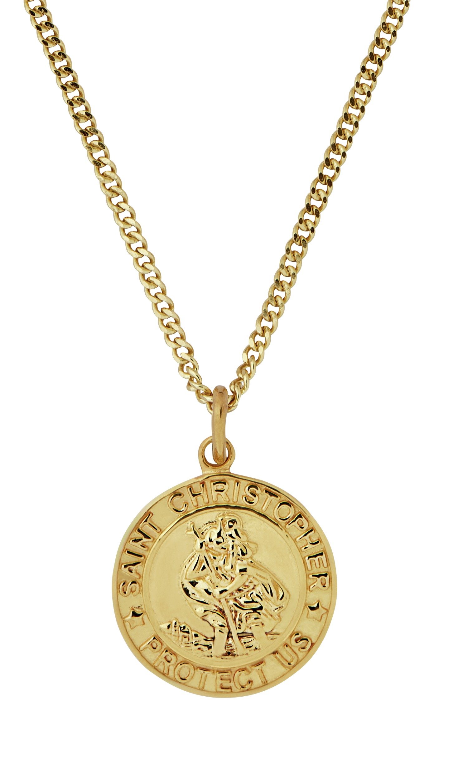 Revere Mens 18ct Gold Plated St. See more related results for9ct gold st christopher pendant. 14KT Yellow Gold St Christopher SMALL 15mm Round Medal Pendant Chain Necklace Patron Saint of Travelers.